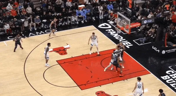奥克罗底角接球沿底线突破吸引菲利回收护框,武器埋伏在近框区域接奥克罗突破内传内的瞬间迅速起抛投,完成快速终结。